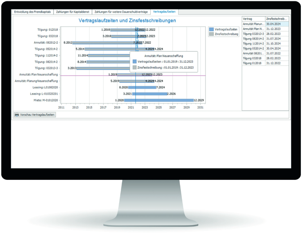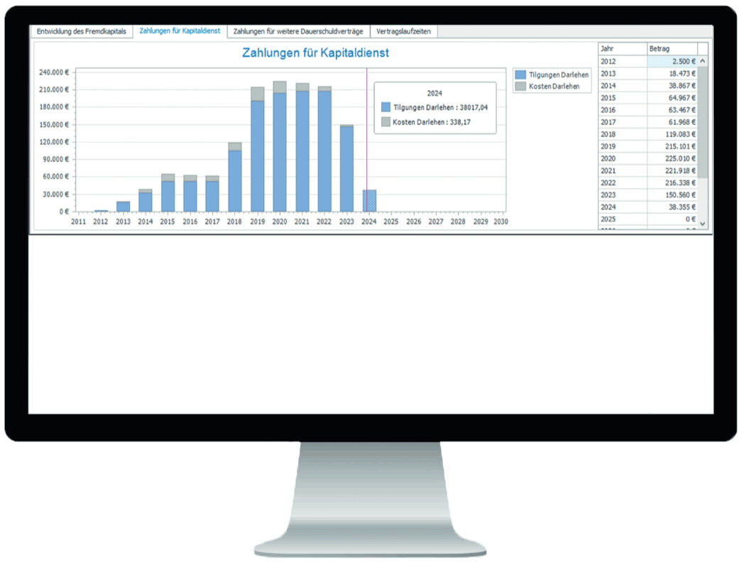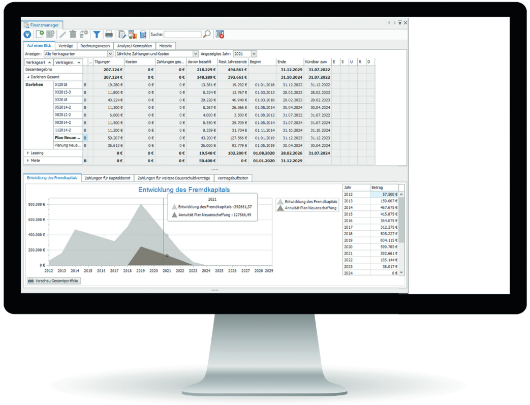 Mittelständische Unternehmen behalten die langfristige Verschuldungsentwicklung im Blick und können zahlreiche Funktionen zur Integration der Finanzmanager-Daten in das eigene Controlling nutzen.