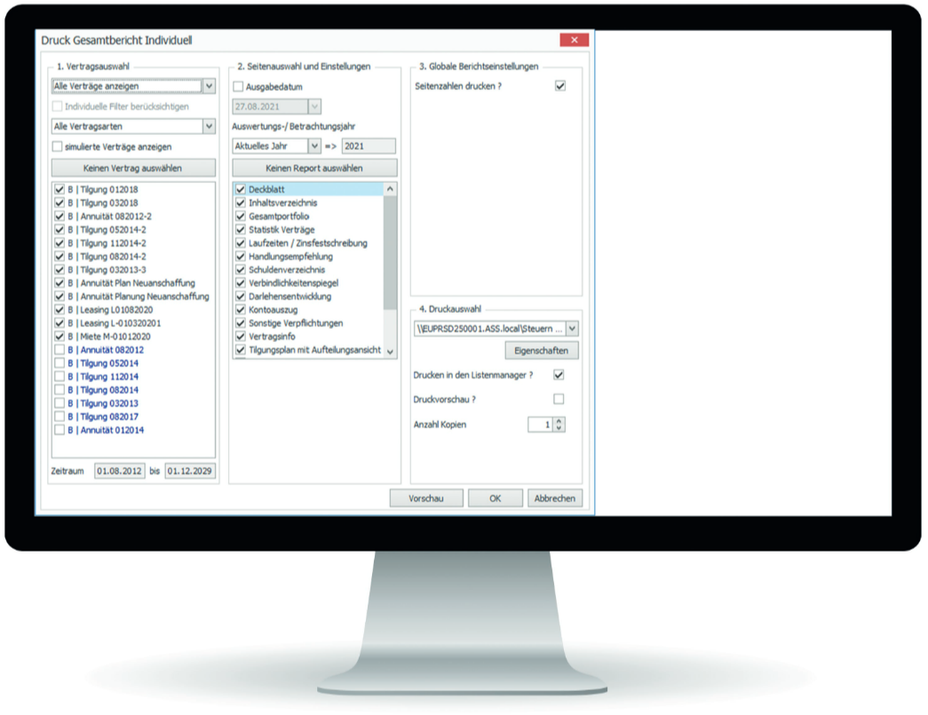 Übergabe der berechneten Raten, Zins- und Tilgungsanteile in Ihre Buchhaltung und Ihr Controlling